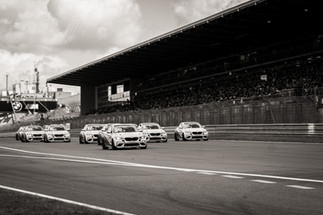 Wer wirklich der mit treuherzigem Blick untermauerten Aussage eines Harald Grohs geglaubt hatte, dass es ja "eigentlich um nichts gehen" würde, wurde nach dem (stehenden) Start spätestens in der Yokohama-Kurve (ja, das ist bereits die erste Abzweigung nach Start- und Ziel, genau vor der AMG-Tribüne) eines Besseren belehrt: